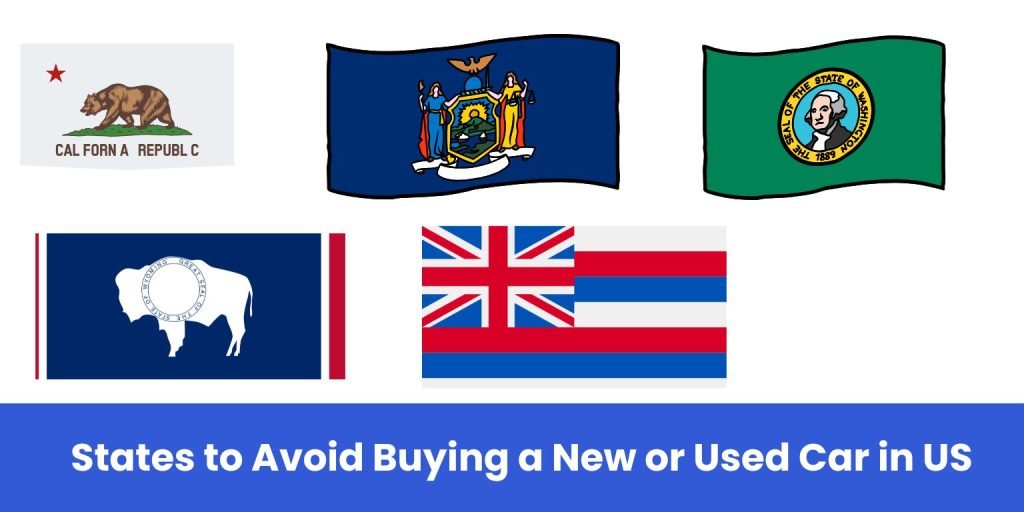 Certain states can present financial challenges when it comes to buying a new or used car in the United States. The total costs could go up because of the high dealer documentation fees and sales taxes such as: