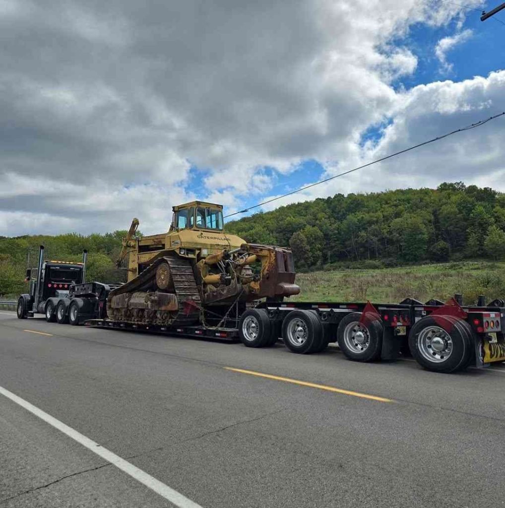 - Secure Loading: Heavy-duty straps, chains, and ramps are used to stabilize machinery on lowboy, step-deck, or low-clearance trailers.